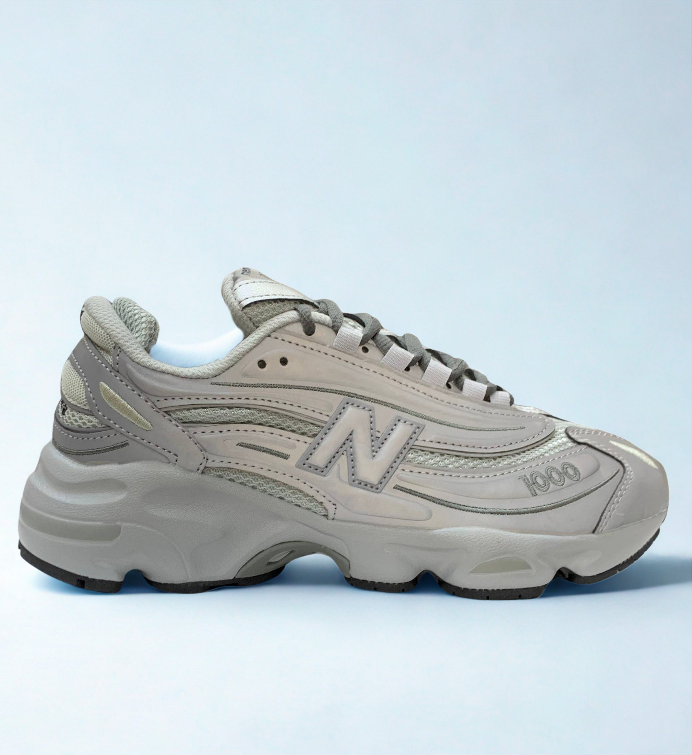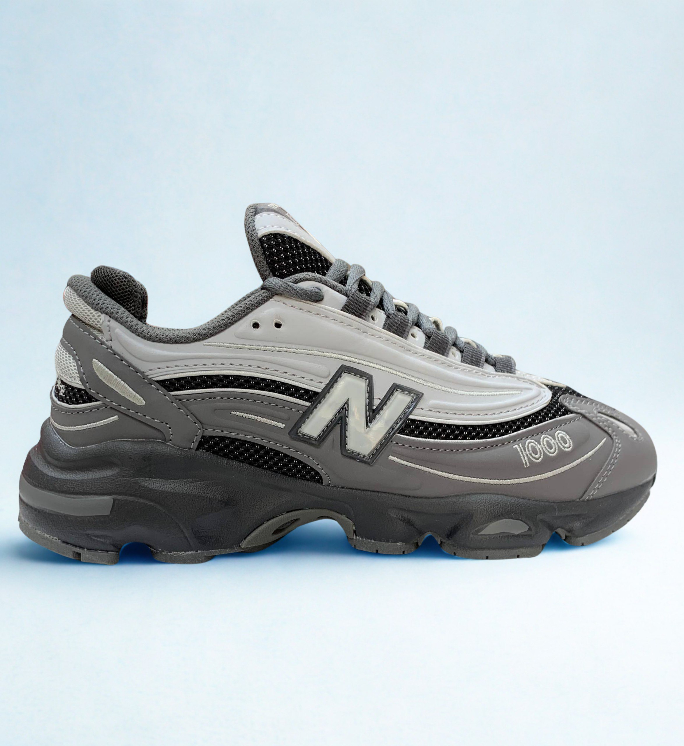 | Détails distinctifs | Logo "N" sur le quartier, lacets ronds, design ondulé sur les côtés |